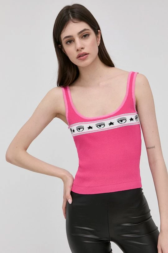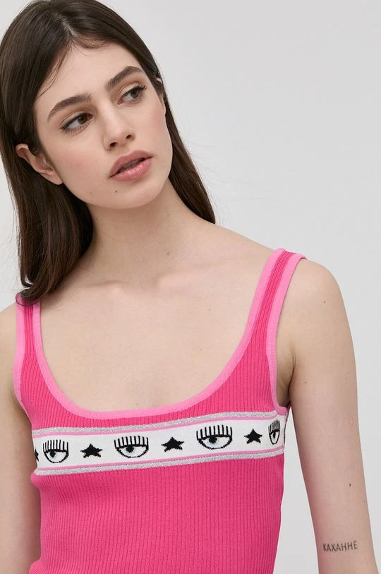 Γυναικεία Αμάνικος Chiara Ferragni – Top Logomania έντονο ροζ