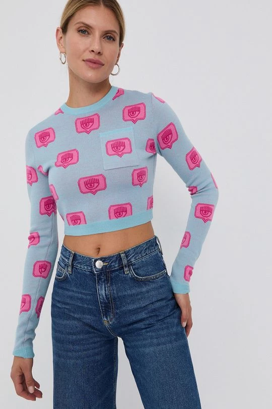 Πουλόβερ από τη συλλογή Chiara Ferragni. Μοντέλο από μάλλινο πλεκτό.