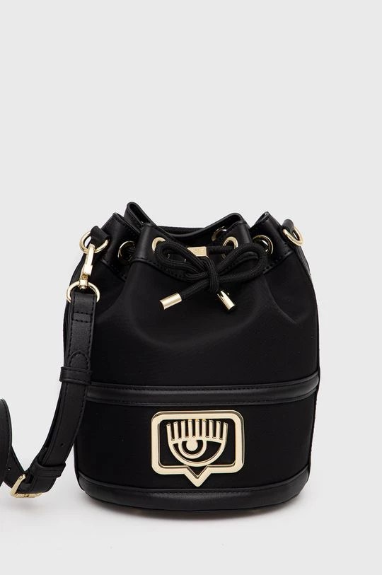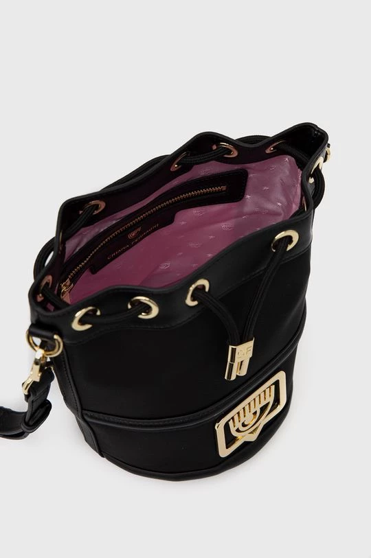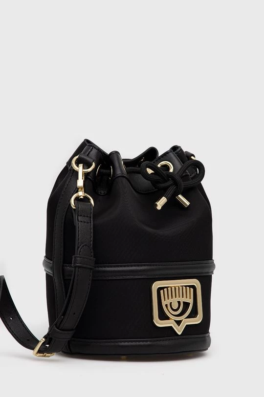 Μεσαίου μεγέθους τσάντα από τη συλλογή Chiara Ferragni. Μοντέλο με κλείστρο από συνδυασμό υφασμένου υφάσματος και οικολογικού δέρματος.